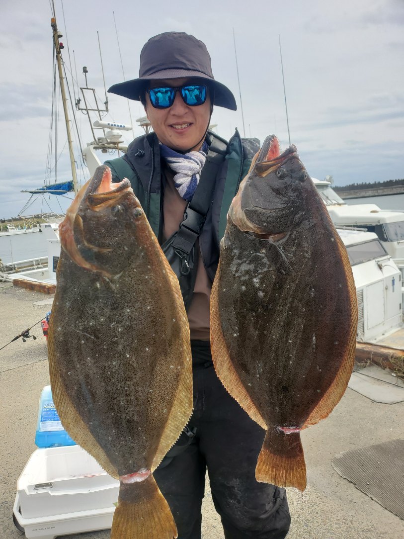 ヒラメ8匹トップが2人。平均的に型良く食べ頃ゴロゴロと釣れてゲストも良かったです!